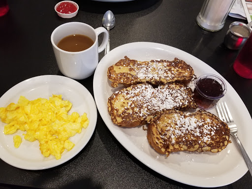 a friend told us about this place and we were surprised how good it was. I got the Big Dipper : 3 eggs , hash browns, bacon and Challah French toast . The bacon was thick and tasty,and the browns were crispy and delicious . I couldnt finish the three humongous slices of french toast so I took two of them home. Real butter and real maple syrup was a nice touch. For 10.95 a real bargain. Coffee was above average and only a buck. Definitely coming back to try one of their omelets. Harv