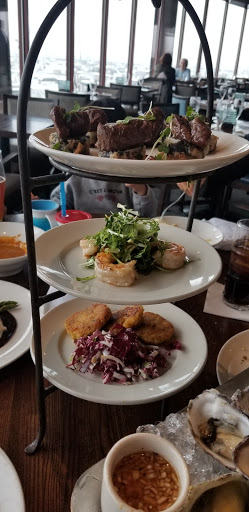 This is simply a great upscale designed restaurant that provides a stunning marina view and creates delicious dishes that are meticulously prepared and beautifully presented. They even have a trout pond that you cross over as you are seated! This review is for Restaurant Week. I had the Shrimp and Pineapple salad, Ciopinno, and Chocolate Ganache Cake for food, and the Scratch Margarita and Eastside Elderflower for drinks. The salad contained tiny shrimp that are similarly found in the Costco freezer aisle, so it something to be desired. However, the Ciopinno MORE than made up for it! What a classic, scrumptious, and hearty dish. Dessert was quite literally a pan-mold of pure Chocolate Ganache--it was high brow frosting at its best, alongside creamy gelato. THIS DESSERT IS NOT FOR THE FAINT OF HEART. Lastly, the beverages were delicious. The margarita was what I expected, nothing more, nothing less. The Eastside was truly refreshing, and worthy of another visit--gin, elderflower liquer, crisp cucumber and muddled mint! Overall, the service was excellent, the view was excellent (definitely recommend making a reservation close to sunset!), and the experience was, well, excellent.