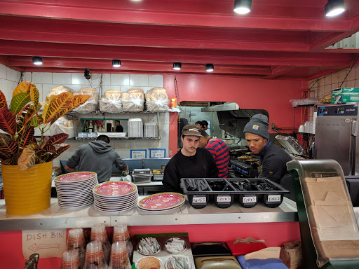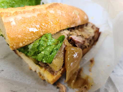 I came here for lunch at 2:15PM on a Friday, assuming it would be empty; I was shocked to find a long line out the door, even with the threat of rain looming. Obviously, this place is well-known, and for good reason. We ended up waiting about 45 minutes to order, and another 15-20 to receive our food after that. The line went fast enough, and the cashier at the front was very courteous, unlike what I would expect in a similar situation in New York City. I got the Caribbean Roast sandwich, which is their specialty. I have to say: it is the best sandwich I have had in my life to date. I was hard-pressed to think of a sandwich that was that close, honestly. The famous cheesesteaks of Philadelphia were no match; only a deli sandwich from 2nd Ave Deli in NYC is close, but no cigar. There is so much going on in this sandwich. The pork is sopping with juice and flavor. The aioli adds a pop, and the caramelized onions add some sweetness and complexity. Add some cilantro and romaine for a little bit of balance and a lightly toasted baguette and this thing is damn close to perfect. Keep in mind, though: it is near impossible to eat without making a tremendous mess. Be prepared to be covered in sauce, but you wont mind.