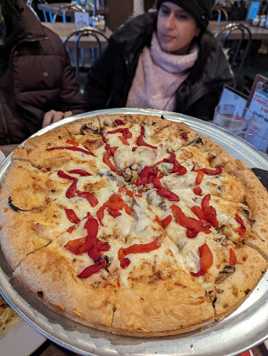 Our family has been enjoying great pizza at this landmark for years. The newer model is much more comfortable, although we generally had enough people for dinner to get one of the larger rooms at the old site. Good pizza starts from the crust and just gets better from there. I asked about the crust to find out why it was so good. If I remember correctly, I was told the owner was still making the dough by hand every day. The sauce is wonderful and then there are the excellent toppings. Lots of cheese but if you choose your toppings carefully, very little grease. The pizzas are large in the sense that they are heavy and loaded with food. Not like by the slice pizzas that you can see through. Try a Ceasars salad for the table. One order will easily feed four. I have never been dissapointed with the service. When its busy, as is usually the case, you should know that your order will take longer to come up. The staff is friendly and always treated our children very well. The location is perfect. The parking can be hectic but theres always spaces on the side streets. Get a table near the windows and if you enjoy people watching, this is the place to be. Even when your waiting for a table you can still have a beverage. Go there, eat there and enjoy.