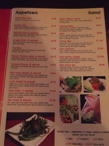 Ive ordered takeout from here several times. The pad see ew is really good and the pad Thai was just okay. They have fast service - usually ready for pickup in under 15 minutes. Its been really quiet inside every time Ive been there. A little pricey for the portions but not too bad. They really need an online menu, though. Be careful pulling out of their parking lot - its a blind turn into a heavily used street.