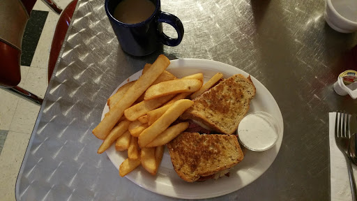 I love this place. Charming, off-the-beaten-path 50s diner that serves cheap American comfort food. The waitresses are really nice, and if youre a regular, theyll remember you and what you like. Usually busy, but lunch is quick and always satisfies. Im a big fan of their club sandwiches and burgers. Many locals favorite hidden gem.