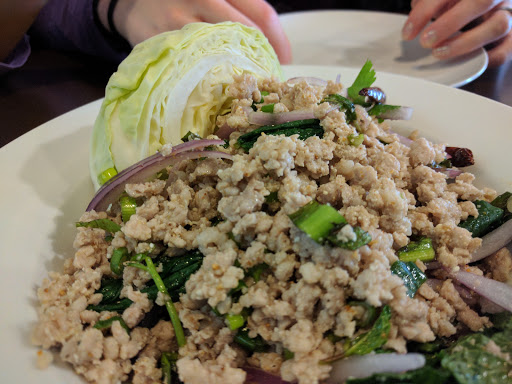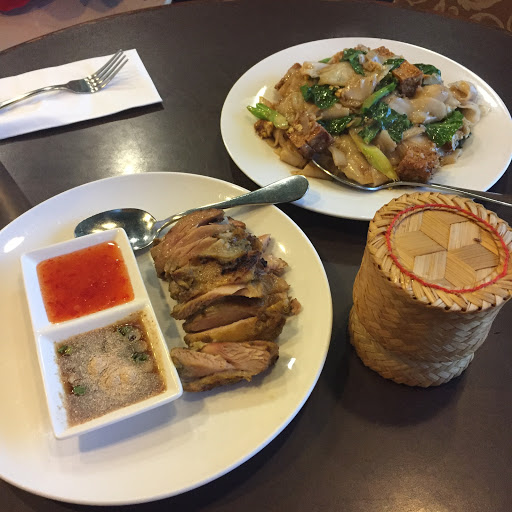 This place is awesome! I love eating Thai food and this place does not disappoint. It is next Jimmy Johns near LA Fitness so its a little hard to fine. The staff here is incredibly friendly and obviously is very knowledgeable about the food on the menu. Per recommendation of our server, I decided to get the braised pork leg and spring rolls. The spring rolls were very good! But the braised pork leg is definitely one of their best dishes. I came back here with my wife to try the grilled chicken with sticky rice and she tried the spicy holy basil with minced pork. The grilled chicken was very good as well, although I find that the quantity of food given is on the smaller end. My wife LOVES the spicy holy basil with minced pork. Perfect combination of spices and is just right for her.
