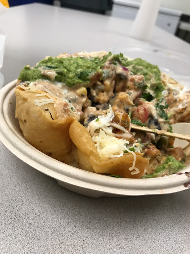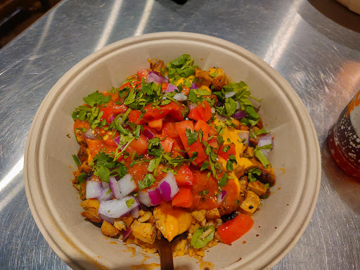 Customizable "mexican" fast food. Its pretty good for fast food. Its just as good as Chipotle (which is across the street), but usually has a significantly shorter line on weekdays for lunch. I usually ask for extra cilantro on my chicken bowls, and this location used to oblige. Recently theyve been telling me they dont have any.