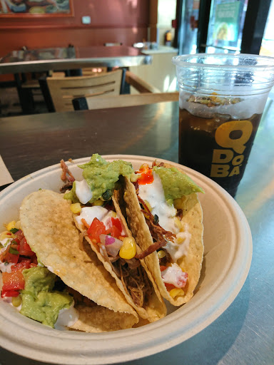 Qdoba is a fine, if basic, American burrito fast food establishment. This particular location is directly across from Chipotle, so take your pick. I defer to Qdoba for the fountain soda options, of which there are many, and the queso. You cant go wrong, though naturally you could do better.