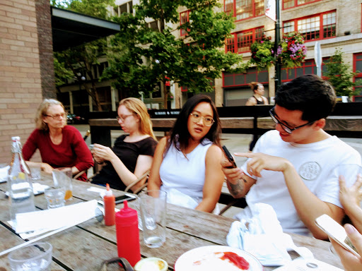 Great, casual yet trendy atmosphere. Sort of a sports bar meets downtown grill vibe with delicious comfort food options and a large outdoor patio area. If there were a burger worth the almost 17 dollar menu price, it would be the "Quality Burger with hand cut, skin on fries." After tax and tip I ended up paying 21 dollars for a burger and fries. I think Ill just stick to beer next time.