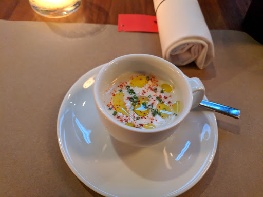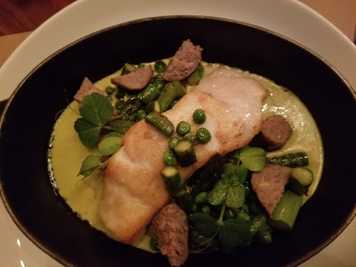Went for an early diner with coworkers. Staff were courteous and service was prompt and as expected. The bar does not serve beer on tap which I found lacking at a restaurant which identifies itself as a brasserie. Even the beer list could be considered on the limited side. The Boston lettuce salad was very simple but the dressing was the highlight with its flavors of rosemary and tarragon. The halibut was cooked to perfection, moist and flaky, but puree and the beans served with it totally overpowered the flavor of the fish. The gnocchi was well prepared and tasted very good. We missed this time on dessert. I would probably come back but not in the near future and definitely not for a business dinner.