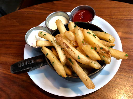 Really happy with this place. Great atmosphere, first class wait staff and of course (what truly matters) outstanding food. Make a reservation as they are popular of late. Staff treated us well, giving us two appetizers on the house while we waited for the table before us to clear out. (Side note, if you are late for your reservation dont dilly dally..you arent the only people in the world and are probably holding up some peeps that are hungry). All cocktails I had were great and I love everything. Id absolutely get the fried mushrooms again, not something Id imagine would be so outstanding but Im still thinking about them. The duck, a must as well as the beef bourguignon. Overall Im comfortable you wont run into much that will let you down.
