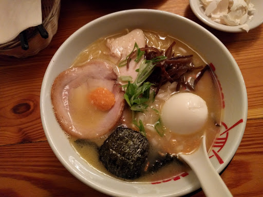 This ramen shop is interesting. First, it has unlimited hardboiled eggs but they are not the marinated eggs that you expected from a ramen shop. Second, it offers egg noodle and flour noodle. I ordered egg noodle but I will go again just to try the flour noodle. Also, this place main soup base is chicken soup instead of tonkotsu which is more common in Seattle. The egg noodle has really good texture, crispy and chewy. The soup is also really good. I ordered the garlic chicken soup base one. I found actual chunky pieces of garlic. Overall really good ramen! I would prefer the marinated egg with running yoke tho.
