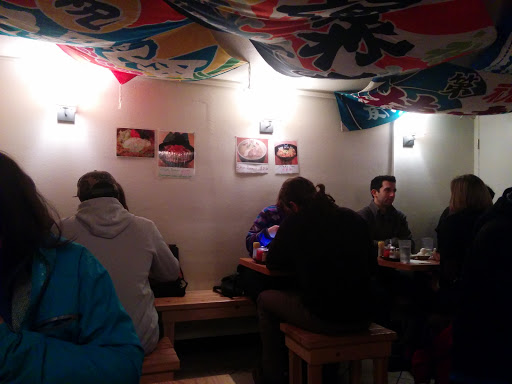 Lots of cell phone "reviews." 5 stars, no words. Useless to someone looking for a descriptive experience. My wife and I stopped by one month ago. The young waiter greeted us. Funny this place did not really look like a restaurant, but more like a fast food noodle place. I wanted to sit at a table available next to the door but this young directed us to the "basement." He wanted us to squeeze between two tables elbow to elbow with strangers... When I pointed out that 2 tables of 4 were available on the other side of the room. Oh no! he said, you cant sit there is reserved for 4 people. It was 2 in the afternoon, no one was waiting to be seated. Ramen places in Japan are the McDonald equivalent. I had an epiphany... maybe I should open a McDonald and start directing my customers to specific tables so I can maximize space usage. This is what this Ramen place is all about... Maximizing $$/sq footage. We just left.