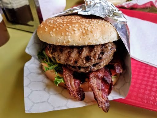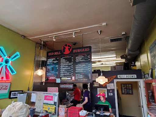 Red Mill is truly a great burger experience. Ive been a long time fan of Red Mill and the burgers, shakes and onion rings are the perfect hangover cure/burger fix. The last few times Ive been to Red Mill, Ive been slightly disappointed with lack of consistency and how packed full of noisy kids/families it was. Clearly this is not Red Mills fault, however, I find it slightly distracting to be enjoying a meal when their are screaming children running around. When it came to the food, the last time I went I ordered the Chicken Club Burger, which is usually a great burger if you are not in the mood for red meat. I was disappointed to find that they changed the burger vehicle from a lovely kaiser bun to sourdough bread, making the burger soggy and lacking in flavor. For a place I love so much, the inconsistency and overall ambiance of screaming kids has been a turnoff as of late. THAT BEING SAID: What keeps me coming back to Red Mill, though, is the mill sauce, the onion rings and that bacon (the bacon that they literally put in a giant stack next to the grill). Unlike other "special" (non-special) sauces that many burger joints have these days, mill sauce stands out from the pack with a hint of spice. The onion rings are a thing of beauty: perfectly crunchy, never greasy and full of great flavor from the cornmeal batter. Lastly, the bacon. Im somewhat of a bacon snob because while bacon is bacon and, yes, it is (most) always scrumptious, there is something to be said about good bacon. Thick, peppery, salty, smoky and perfectly cooked - crispy yet still chewy, never soggy/floppy. Red Mill has said bacon. Which is why it would be a sin to go to Red Mill and not order a burger/chicken burger without bacon. The Bleu Cheese n Bacon Burger is my go-to because Im a sucker for a bleu cheese burger with bacon. This ones perfect. I love their burgers because they are juicy and sinful, as burgers should be, but never greasy. They remain fresh with the healthy stack of fresh vegetables. They also serve their burgers on a great Kaiser bun. I recommend ordering a chocolate malt to take your burger experience even more over the edge.