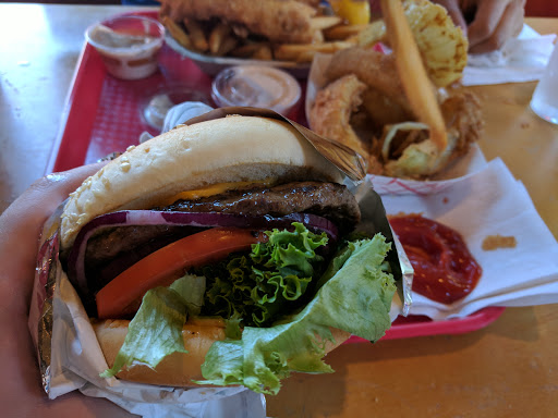 Awesome! Fantastic location and fantastic food for what it is. Better than the original Totem House. Thank you Red Mill for saving this building! The fish and chips are tasty and not greasy, as are the fried shrimp (although the dipping sauce is a little cloying). The burgers are great for the price, especially with their famous bacon. The caramelized onion burger is a good concept, but the onions arent caramelized enough to impart much extra flavor. Best to just go with the Bacon Cheeseburger. The milkshakes are a good consistency and the espresso is especially tasty, with little bits of espresso throughout. Parking is easier to come by than the original Red Mill location, but can be sketchy on busy days. The lines can be intimidating and finding a table can feel like a commando operation, but its worth it. And... you can always take it to go and have a picnic at the Locks across the street.