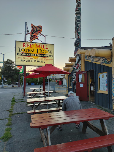 A (sad) Fish Story: My brother could afford any restaurant in town, but when visiting home he used to say, "Lets go to the Totem House for fish and chips!" It used to be the kind of place that would end up on one of those dive eatery TV shows the way Mikes Chili Parlor in Ballard did. Fast forward to the new owners, who INTENTIONALLY dont even try to match the old recipe! Its actually disrespectful to Ballard history to not offer it as a menu choice imo. So sad. I had a 2-piece yesterday, and the Gortons fish fillets in my freezer honestly taste better. The TH fish wasnt even kind of good. So two stars because the Totem House is not out of business, and Red Mill makes fantastic burgers, fries, and shakes. Order those by all means. Otherwise picture a fish inside a red circle, with a diagonal (red) slash through it.
