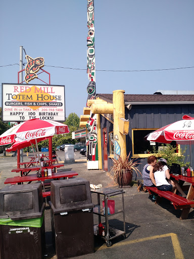 Totem house used to be a fish and chips place across from Locks, but is now part of Red Mill and has added their classic burgers and shakes to its repertoire. Burgers are tasty, the fish and chips is still there, and it remains a great place to get food to eat while watching ships pass through the locks in the summer.