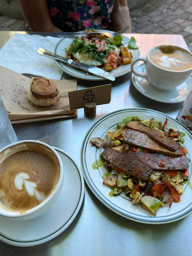 Amazing latte, not too bitter, very smooth. The potatoes in the breakfast were quite well seasoned and delicious. Service is quick and friendly. Definitely coming back.