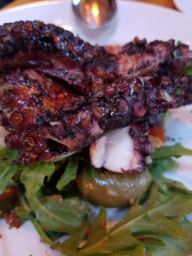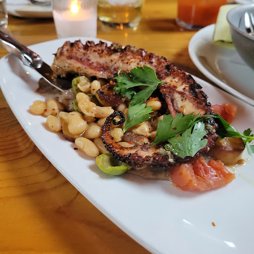 Like idiots, we didnt have a reservation (the next available table was at 9:15, a good sign in my book) so we opted to wait behind another couple for some open seats at the bar. We were quoted a 45 minute wait. The host was very apologetic and offered us water and bar menus to look at. I ordered a delicious smokey mezcal/orange cocktail and brought it to the bench where we waited. After 15 minutes the couple before us were seated and 5 minutes after them we were seated, 25 minutes below the time we were quoted. Great! We ordered 2 oysters apiece, 2 small plates and an entrée. Wow. I wont bore you with the details but everything we had including the great service blew is away. These guys are deliberate and thoughtful with their approach to food and service. We will be back. The tuna tartare and the grilled octopus were a delight. I wanted to hold the dishes up above my head like that scene from The Lion King with Simba on pride rock and just let the glory and light filter down onto our smiling faces.