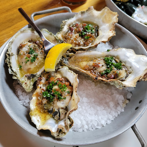 Five stars for happy hour. Had the oyster poboy. Great stuff for $9. Oysters are priced reasonably off the dinner menu - $3-4 a pop. *Note that while one oyster species may usually be larger or smaller than another species, they ended up serving us some specimens of a certain large species that ended up being quite small, and a large specimen of a typically smaller oyster. The bartender knows what hes doing. Manager is also solid at making drinks too when they get busy. Great spirits selection, didnt see anything too interesting off their cocktail offerings though - would be fun to have a seasonal cocktail recommendation - or even a pairing recommendation for their various dishes. Otherwise, prices can seem a bit high, but they are still busy - its what the market here can afford. Go for happy hour!
