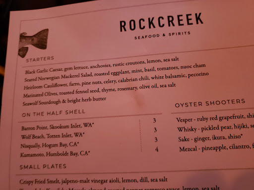 One of my most favorite seafood restaurants in the COUNTRY. Rock Creeks menu is an excellent showcase of fish and seafood of the Pacific Northwest and no trip to Seattle would be complete without a visit here. I have been here many times and had the pleasure of meeting many of the servers, but my absolute favorite is Brian. He knows his fish, he knows his wine, and he makes everyone at the table feel comfortable. I would highly recommend asking to sit in Brians section, he is awesome. One could order in the standard 3-course format, but some of my best experiences at Rock Creek have been when ordering a selection of appetizers and small plates, and one large plate to share (depending on how many people are at the table). Menu staples like the calamari and the oysters are must-haves if its your first time, but the rest of the menu changes every day so I would personally recommend taking advantage of whatever sounds new, different and especially seasonal. Enjoy!