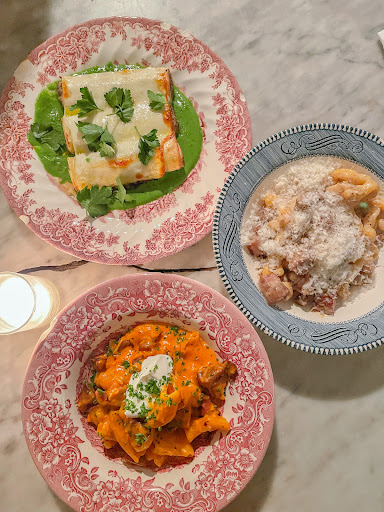 Cute AF! The house has been VERY thoughtfully renovated and decorated. We sat on the deck on the right side and it was very quaint surrounded by brick walls with climbing ivy. The food looked great, but I felt the balance of flavors could have been better, especially on the trout entree (bland) and the fig app (overly tart). The lamb shank was delicious and the owner was kind enough to sub the polenta for grilled veg (pea vines, peppers, endive). We may have made a grave error by visitng a rustic italian restaurant without trying the bread or pasta... so please take my criticism with a grain of salt. Overall, would definitely recommend on ambiance alone!