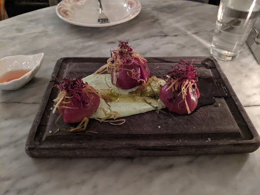 I had such high expectations for this place as there has been lots of buzz about it in our neighborhood and its located in such a cute, old, original Ballard home with great ambiance. BUT, none of that makes up for how terrible the food was. My mom and I went for lunch and we were really excited for their beet salad as we both love a good beet salad but theirs was practically inedible. It was the worst salad either of us had ever had. It was almost as though their chef has no understanding of what constitutes a salad dressing. There was pretty much just oil over the lettuce. My salad was missing the blue cheese entirely and my moms was missing another ingredient. They also threw the stem of the lettuce in mine which was taking up 1/3 of the plate and wasnt edible. On top of the food being bad, their business model is to have as little service as possible, with patrons retrieving their own silverware, napkins, and self-serve glasses of water and carrying them to their table. Thats fine for a low-end type of restaurant, but this isnt that. The "server" didnt even check on us to see how things were or to see if we wanted another glass of wine, which we both would have... We were so annoyed by the end we decided to go get more wine somewhere else down the street. The worst part is that they still expect you to tip despite the fact that youre pretty much serving yourself. Honestly I cant wait for them to go out of business so a better restaurant can take over this adorable location. Its too cute to be wasted on terrible food with a s****y business model.