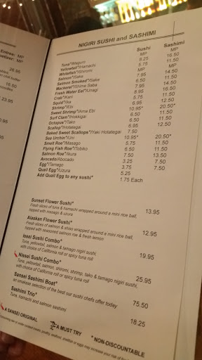 Great food just like we had in Maui. We walked in and nobody was at the door so we sat down at the sushi bar as you can in 99% of the sushi bars around I went to the rest room. When I got back my girlfriend wanted to leave she said someone came up to her and said you have to wait to be seated. She pointed out the person and I laughed and said she doesnt work here look how she is dressed in a plaid shirt some scrubby jeans and some worenout boots. I asked the chief if it was a problem he said no no worries. I did notice this person that looked as if she could not have worked in a place like this how she was dressed and she was working as a host guess she might need some people skills as our bill was over 125.00 for 25 min of sitting at the bar.
