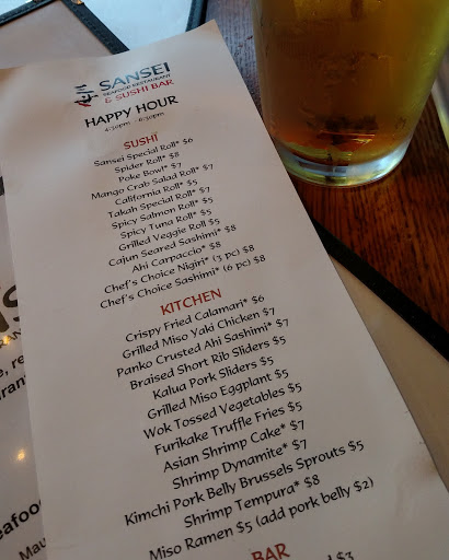 Being a former resident of West Maui, I used to frequent the Kapalua location for Sanseis Seafood Restaurant & Sushi Bar. I occasionally island hop on over to Waikiki to eat at their other location as well. So one can say that Im a fan of Sanseis. So needless to say I was rather excited when I knew a location was coming to Seattle. Food quality is still on par with the Hawaii locations but prices seem to be higher and portions have gotten smaller. Which is a bit of a disappointment but never stops me from consuming any and everything I desire. I tried a few recommendations from the server of the new menu items, though the items were fresh and taste and flavor I wasnt enthralled as I enjoy more traditional flavors for sushi. After a bottle of sake and a couple of beers, I honestly cannot remember in specific what was ordered aside from the Chefs choice sushi boat and dynamite shrimp. Two staples of "what to get" while dining at Sansei. Overall a still great food and fresh ingredients. Im almost impartial to 3.5 stars because the servings are small and the price is pretty high. The atmosphere of the Hawaii locations are more enjoyable in large open spaces and live karaoke, versus the Seattle location which is very sectioned off, small sushi bar makes eating anything more than one roll at a time difficult. If you order the sushi boat, youd be eating right off the boat. Service is good and sushi chefs are knowledgeable and helpful. Parking could be a pain as they are located downtown Seattle on a one way street. They are a big (hawaiian) named restaurant that came to Seattle to compete with our local greats so it does make it tough. I honestly cant say that they are doing something above and beyond what places like I Love Sushi, Umi Sake House, Shiros, Maneki, Musashis, Mashiko... just to name a few. So as much as Id love to give them more than just an A-OK, I cant. The flavors and the size of dishes in Hawaii were bigger, prices were cheaper AND they had open mic karaoke for entertainment as well. Combine that with the atmosphere of sunshine, warm weather and beaches made Sanseis in Hawaii a 5 star establishment - the Seattle location doesnt offer any of that, expensive/difficult parking, no views, no karaoke, smaller portions for a higher price and really have just been overcasted by grey skies and tough competition. 3 Stars isnt terrible - its good. Just not great.