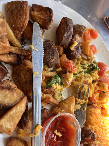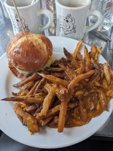 Im surprised how empty it was for a Saturday night, although we did get here around 9pm. Happy hour was at 10pm but it was still quite empty. Oh well, more for us! PORK BELLY + CORNMEAL WAFFLES Simply delicious. Trust me when I say this: you have GOT to eat each bite with all 4 things together. Thats a slice of pork belly with your fried egg and cornmeal waffle, drizzled with maple syrup. Ohman, it was so good. Even though Im not too big a fan of cornmeal due to the grainy texture, I thoroughly enjoyed my meal. BEA ARTHUR Whoooo! If you want a strong bourbon drink, this is it! First few sips, I could feel the burn going down but as I continued eating my meal, I started to enjoy this as I took more sips of it :P POUTINE I had some bites of the poutine and it was good! Not too salty, not too soggy, and just the right amount of flavor. You can substitute fries/salad for poutine for $3 when you order a burger or sandwich. Skillet Diner is a nice spot. Wanted to try foie gras but didnt see it on the menu ): But thats okay, I had a great meal here regardless. Will save this place for future trips to Seattle!
