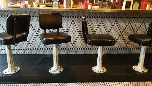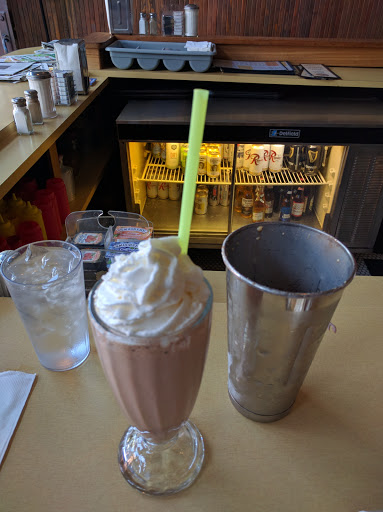 Stopped in to get a meal for three of us. Small retro diner with nice soup of the day (mushroom and it was delicious), some steak, burgers and breakfast such as Eggs Benedict, burritos and omeletts. A long list of choices for shakes and ice cream sundaes. If you appreciate old things - you will enjoy the diners black and white tile floors and a long vintage L-shaped Hopper-like counter of nicely cushioned counter stools that have delightful paint-chipped trumpet-shaped metal bases. A hot coffee or old fashioned shake beckons you to sit and relax at this counter. Along a single wall are padded booths up against dark wainscotting. I appreciated the sparce but warm 30s/40 feel. The service was pleasant and very caring and personable. The food was decent. We will be back.
