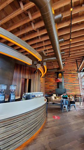 Beautiful shop that shares design cues from their Pike Place location. Love the fireplace and comfy lounge seating. I was bummed they did not serve chai, but they made me a black tea latte that was pretty good. They even offered me a complementary slice of chocolate. Ive heard that is something they do everyday. It was delicious!