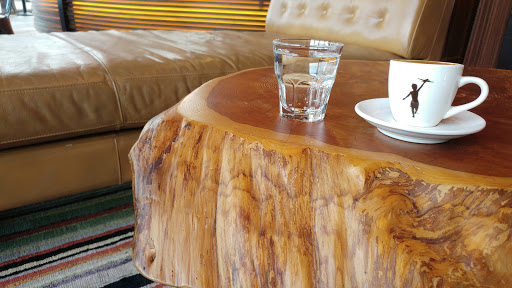 Their A board proudly states that they were voted best coffee roaster by ... a wine magazine. They largest pour they do is 12oz coffee. Besides that, the coffee is OK and they have some delightful mini pastries. Ridiculous Star-Trek looking coffee bar. Cozy seating area with a couple of chairs and a fireplace.