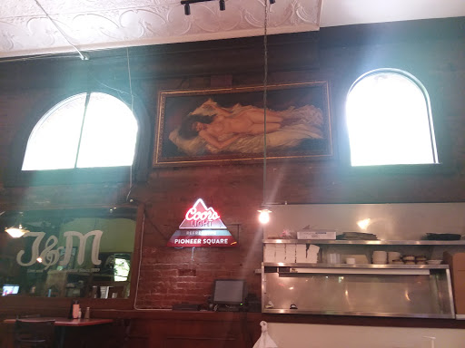 Was Here for the playoff game between the panthers. Crowded to say the least; but then again what else would you expect. lol. Walked in with a few friends (group of 6) and the waitress (wish i could remember her name) was probably the best Ive ever had in seattle! Not only did she manage to accommodate us but she also was prompt on whatever needs or questions we had. The atmosphere was amazing. Oh and the pizza...well lets just say that we were definitely surprised at how good they were. Ive never had a plain pepperoni pizza taste that good! Had such a good experience and J&M cafe definitely has won us over. So much so that well be seeing them again this sunday! btw we are all recently college alumni; there are plenty of places we could go to..but none with this atmosphere.
