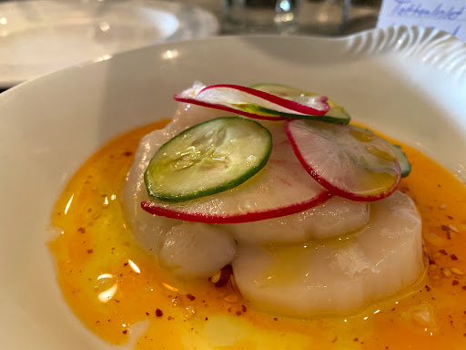 I knew this place was expensive, but dang, I wasnt prepared to go bankrupt and NOT be full on top of that. Granted, the fresh oysters were top notch. We split 2 dozen oysters and tried all four kinds ranging from sweet to salty, including the amai (sweet). The menu has changed since I visited, so I cant tell you what the other 3 were. The price of the oysters ranged from $2-$4 a piece. I wasnt satisfied with the quantity of the original order, so I ordered more, not knowing that I chose the most expensive one. Yep, I paid $48 for 12 oysters (on top of the original order). Lovely. (I later had slimy, gigantic gulf oysters in Texas that made me sick for a week, so that goes to show all oysters are NOT the same). We also ordered fried oysters, which are pretty much a personal fave anywhere I go. I wasnt that impressed with the steak tartare, but maybe tartare is just not my thing. I dont know. My group of 6 got there at 3:35, and there was a wait, but at 4:00, the doors opened and we were immediately seated. We were fortunate though because it doesnt seem like a group-friendly setting. The place is tiny! The music was so loud I couldnt hear myself think. Reminds me of being in Abercrombie & Fitch minus the mood lighting.