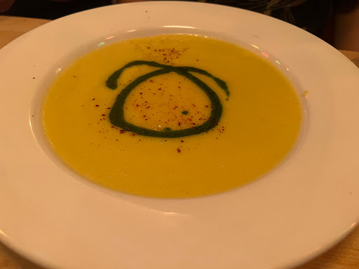 When I saw celery roof soufflé on the menu, I knew it was what I wanted and didn’t bother checking out the other options. It was one of those novel things that lit up my intrigue and I had to taste it. It came on a bed of carrot puree, black lentils, and wilted spinach. The soufflé was light, fluffy, and you get a wonderful celery root note at the end of each bite. The sweet carrot puree enhanced the celery essence and the lentils and spinach made it the perfect winter dish. For a meatless meal, this was incredibly filling and delicious. I was full, but so pleased with my entrée that I had to find out if dessert would be just as good so I ordered the carrot cake with carrot ice cream. I expected cake with ice cream, but when it arrived I realized that it was carrot cake two ways. The cake had a generous amount of walnuts, was moist and very good, but the ice cream was better. The ice cream sat on a bed of spiced crumble and each bite resembled carrot cake exactly! It was fun to have “carrot cake” in such innovative way and I wished I had a larger scoop! This place will be on my “absolute must” list when I visit next year.