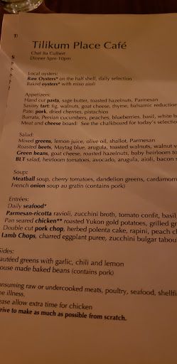 Wonderfully delicious, charming and cozy atmosphere, friendly and knowledgeable servers - there are so many good things to say about this neighborhood gem. Tilikum Place Cafe is small, but full of delicious flavor. The regularly changing menu offers so much to excite your appetite that you may want to try it all. Tasting the first bite of your meal is like immediately feeling youve met the love of your life, a moment you will never forget. Do yourself a small favor and make a reservation. You wont find an empty chair during peak times, though maybe you could after 8 pm on a weeknight. Try Tilikum Place Cafe once and you will absolutely want it again and again.