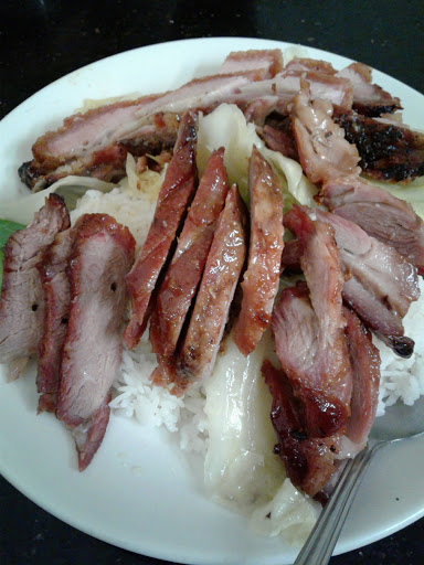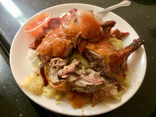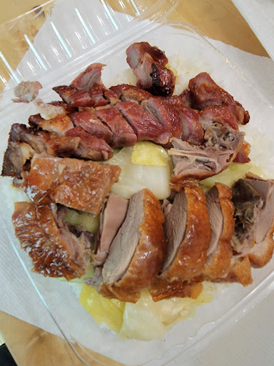 A couple quick observations. Its a small but ample area to operate out of. You step in from off the street right to the order counter. The person that greeted me was pleasant enough. I was warned that its cash only, so I walked up with that in my hands. The lunch ordering system seemed simple enough. One choice of meat, two and more, with rice. I was told to try the duck, and I chose the chicken to accompany it. As I was seated, I noticed I was the least Asian looking of the patrons. I used my chopsticks as that seemed to have diverted watchful eyes. The duck and chicken were fantastic! The staff were speaking loudly to each other in Mandarin as much as I could figure out, and then that would be interrupted by the chop-chop-chop of the butcher and her clever serving up the BBQ. I was laughing inside and quietly to myself. The duck and chicken were cut with the bones and all. So in order to get to the tastiness, you navigated through the bones. As I rated, I liked it, but I didnt quite love it - if that makes sense.
