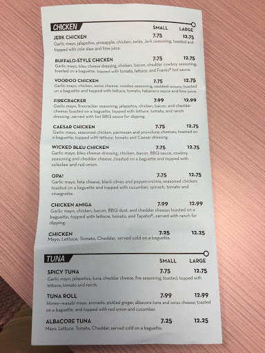 Ok best sandwiches in town, honestly. Theyre all made on thick yummy baguette and all the ingredients are real and fresh. The phoenix and the cowboy are my personal favs. Kind if sparse and simple eating area so I usually get take-out and theyre soups are ok (nothing special ) but other than that Tubs Rocks!