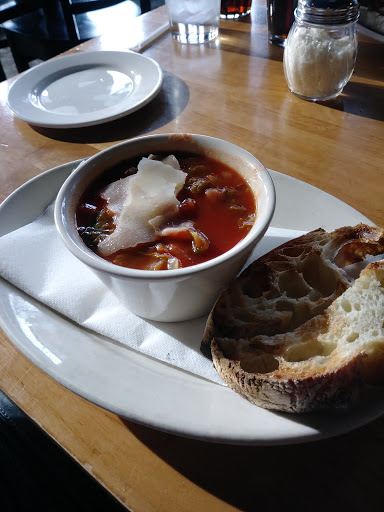 I am so glad I came here for my one and only dinner in Seattle. Im from Georgia and my friend was from Australia and we adored our food! I had the Spaghetti DAbruzzo (a great option for vegetarians - spaghetti with tomato/mushroom ragu, pecorino romano cheese, and julienne sliced red and yellow peppers) and I still think about it. It was some of the best pasta Ive EVER had (and I have EXTREMELY high standards for pasta). I also had the Tutta Bella Amber Ale which is the house brewed beer and it was so great. Our server was very knowledgeable and steered us the complete right way with what to order. If I ever return to Seattle, Ill definitely eat here again. Every time I think of my time in Seattle, I think back to my tasty meal here! Very memorable!