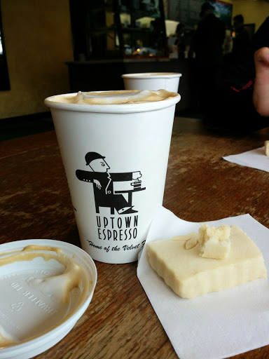 This place is great. Good pastries, better coffee, and relaxed atmosphere. The employees are laid back yet completely hospitable. The fact that the hours of operation cover the early morning to late in the night, increases the appeal of Uptown, and enables for long grad-school study sessions. One of my few gripes with Uptown is the internet speeds...they are slow and choppy at best, though thats not the end of the world. My only other issue is the limited access to outlets, there are like four tables with the means of providing power. Overall I cant complain, its great.