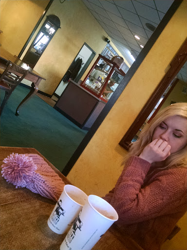 I used to work here. This is a good coffee shop. The baristas working during the busy shifts know what theyre doing. The americanos are grand. The furniture and decor could use a big makeover Many of the tables are rickety and chairs uncomfortable. The green carpet is ugly. But you go there for the coffee, hence the five star rating.