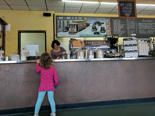 Pretty relaxed coffee shop. Large space with lots of tables. Is very popular with groups on Tuesday evenings (when my group meets there, of course). Some games you can check out, but not like their emporium on Delridge Way. The baristas are nice and the drinks are good.