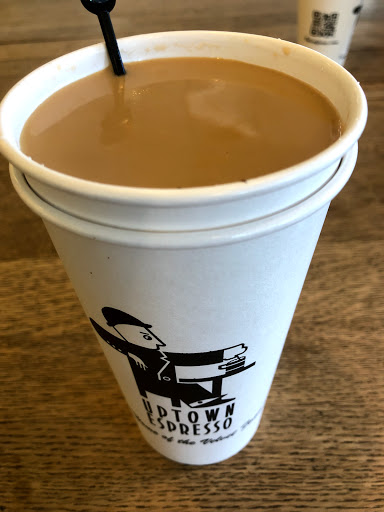 Friendly staff; hometown community Sunday mornings. Velvet crema.