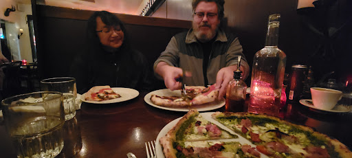 This is my wife and Is favorite pizza place. I love the super thin crust, especially with the way it cooks over the wood fire stove. ... A great place to get this pizza is from their travelling wood stove at the Fremont Sunday market.