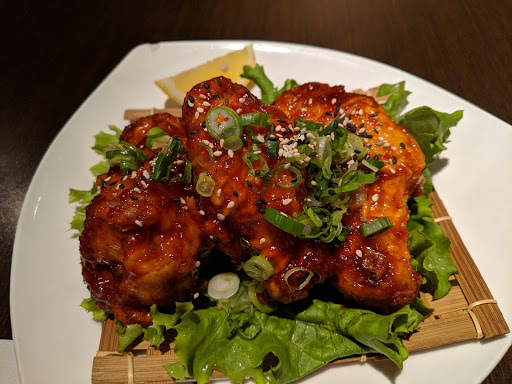 The service is alright and the food was average. Not sure why the rave reviews, but coming from SoCal, this izayaka joint was disappointing. The sushi rice is cool/cold instead of warm/cool. Not enough yaki items to choose from. Yakitori was dry into small pieces and overcooked into jerky. In Japan, yakitori are cubes, and cooked over 700°F charcoal so clicked cooks fast and juices sealed in. The calamari salad had a sweet Thai chili sauce which was a bit too bizzare for me as a salad dressing.