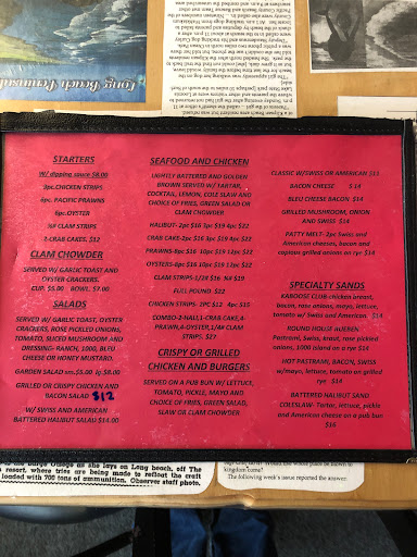 This is definitely not high class, but a cool little greasy spoon. Just your typical diner food, though since it is on the coast, there are a few more seafood themed items on the menu. The portly burger was HUGE! The fries were seasoned and really crispy. The guy running the place sat and talked with us after we were done eating. He was really friendly and told us a lot about the area and things going on.
