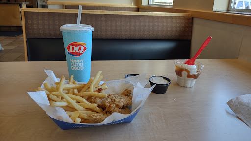 The gravy for the chicken strips is often obviously old and left under the heat lamp or microwaved as the plastic lid is cracked. It also often tastes a bit like plastic and has a too thick consistency. The French fries are often cold and limp, even soggy. So ordering a meal is often hit and miss. Even though other locations have updated to small boxes for fries and paper bags, they still stuff your burger into a rectangular box and dump fries into it. Their waffle machine broke a few years ago and the owner refused to replace it so this location stopped serving waffle bowls well before the other locations did. Larger blizzards often are poorly mixed and have only vanilla ice cream at the very bottom. Their ice cream cake options are extremely limited.