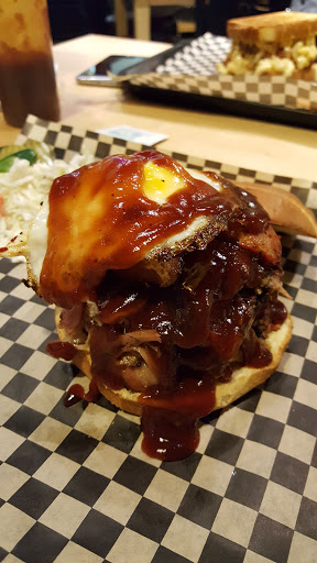The food is amazing! I got the bomb sandwich and it was huge plus the egg was cooked nicely. My mom got the bbq pull pork meal and she said it was good. The beans, coleslaw and potato salad amazing. I recommend this place to anyone. Also corn bread is the best!