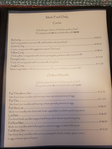 Yes Yes Yes! This tiny little whole in the wall kitchen is exactly what I was hoping it would be. Nestled in a small parking next to a couple other businesses you enter into a family establishment with only about four tables inside. There are a few more tables outside, likely used during good weather days. The kind woman who greeted us was so friendly and welcoming. The decor is a bit knick-knacky with relics from several countries and reminds me of a grandmontherly cottage. You can smell the delicious foods as you enter through the door. The prices are fair for the quality, though the quantity is a little on the smaller side. The Food: We started with crispy, HOT, crab and cream cheese won-tons. Our other starter was the coconut curry chicken skewers in peanut dipping sauce. For the main course I had Lad Na Noodles and Gravy, and it was so good. The only critique I have is that some of the vegetables seemed previously frozen, which gives them a slightly "off" flavor as opposed to fresh. I would love to see the owner/chef choose fresh if possible. That gravy however is the stuff dreams are made of. My husband had a meat and veggie dish. I believe it was a sweet/sour variation. It had more vegetables that he prefers which could have used just a tiny bit more cooking, but the meat was very good though. We plan to return to this cute little family run restaurant and enjoy other menu options very soon!