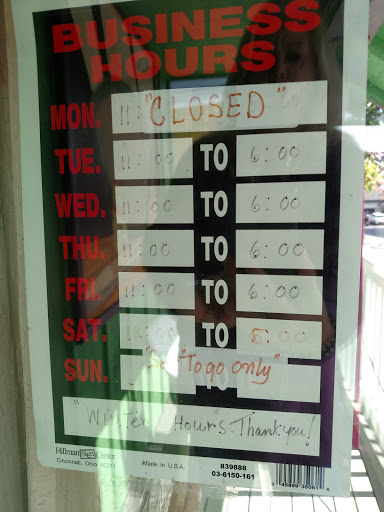 | Working: | Closed 11AM–6PM 11AM–6PM 11AM–6PM 11AM–6PM Closed Closed |