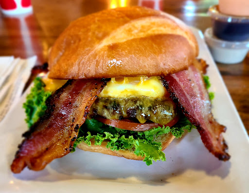 We eat here from time to time. Its a little pricey but the quality of the burgers are high. When times are tight, well split a meal and never got a bad feeling from the staff. Theyre helpful and cheery in the matter which makes us want to come back. So they sell more burgers that way. The wild boar was excellent and the buffalo is excellent. I hadnt had bad service there and been there maybe ten times now. Most times the register was patient. Once in a very packed state there was a slight impatience, maybe was having a bad day, because all other times was fine. After you sit down, you can always and easily order more. We like the place.