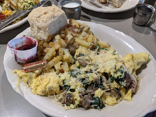 Well.. are you looking for an awesome breakfast experience, in a restaurant with good environment, nice decorations, friendly staff and super delicious food? If you are looking for that type of high grade this place is not for you. Yes the portions are huge but they lack of quality and freshness. We ordered a freshly squeezed orange juice is not fresh, if you squeeze juice at home you will realized it taste like concentrate. Our Eggs Benedict were humongous. The biscuits were low quality and dry, eggs were poached perfectly, ham was good, hollandaise sauce didnt taste like home made, sausage patty tasted funny/raw, potatoes were great. Service was amazing, place design has nothing special and the waiting time is reasonable for being that popular. We will never come again since we prefer smaller portions and higher quality.